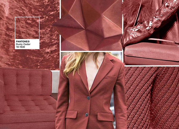 Tương tự như màu nâu đất, tông màu hồng đất hơi phảng phất chút gam màu đồng cũng là một màu sắc “tự nhiên” được ghi danh vào bảng màu Pantone màu thu năm nay. Gam màu này chính là gam màu “họ hàng” với màu hồng đào, thế nhưng tối và “phủi bụi” hơn, dễ dàng đem tới một vẻ ngoài nữ tính nhưng cũng không kém phần cá tính.