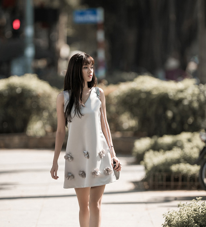 Nhẹ nhàng và dịu ngọt hơn tông ghi đậm ở trên, thiết kế váy ngắn không tay với màu ghi pastel này đủ sức tôn trọn nét đẹp tinh khôi và ngọt ngào cho các nàng khi diện.