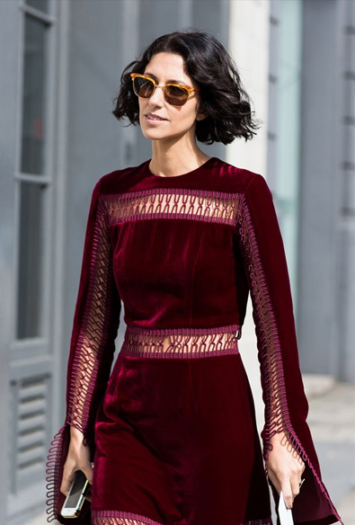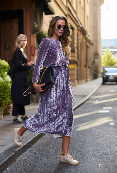 Dễ dàng phù hợp với mọi dáng người và không quá khó khăn để kết hợp với những trang phục khác là những chiếc váy liền chất liệu nhung. Chỉ cần một chiếc váy nhung đơn sắc hoặc họa tiết thêu chìm trên nền vải nhung hoặc đáp ren viền tinh tế là bạn đã có ngay một vẻ ngoài cực đơn giản nhưng vẫn đảm bảo tính tinh tế. Về màu sắc, quý cô nên thử nghiệm những gam màu tươi sáng như hồng pastel, xanh lơ hay gam màu trầm quyến rũ như đỏ rượu vang nồng ấm, xanh lam sắc lạnh… Bạn cũng có thể kết hợp nhung với những chất liệu khác cũng sang trọng không kém cạnh như da thuộc, da lộn để “nâng tầm” trang phục. Tuy nhiên hãy chú ý đến việc lựa chọn trang phục đơn giản, không quá cầu kì, không chứa quá nhiều ren, bèo nhún hay xếp nếp để tránh sự rườm rà, kém sang.