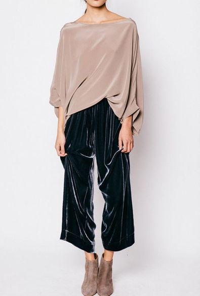 Không chỉ áo váy, trong mùa thu năm nay, chất liệu nhung còn được biến hóa trên cả những chiếc quần dài ống rộng, mang phong cách “menswear” đậm nét. Với những sắc màu trầm ấm như xanh lam, đen, ghi hay nâu… quần dài chất liệu nhung sẽ là sự lựa chọn hoàn hảo dành cho các quý cô cá tính, muốn tìm kiếm một sự mới lạ cho những trang phục thường ngày. Hãy thử trải nghiệm với quần dài ống rộng hoặc ống loe – item đang cực hot trong năm nay – để đem lại một vẻ ngoài đậm nét hoài cổ của những thập niên 90.